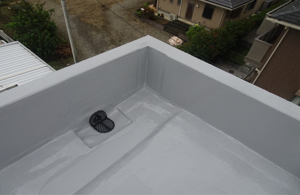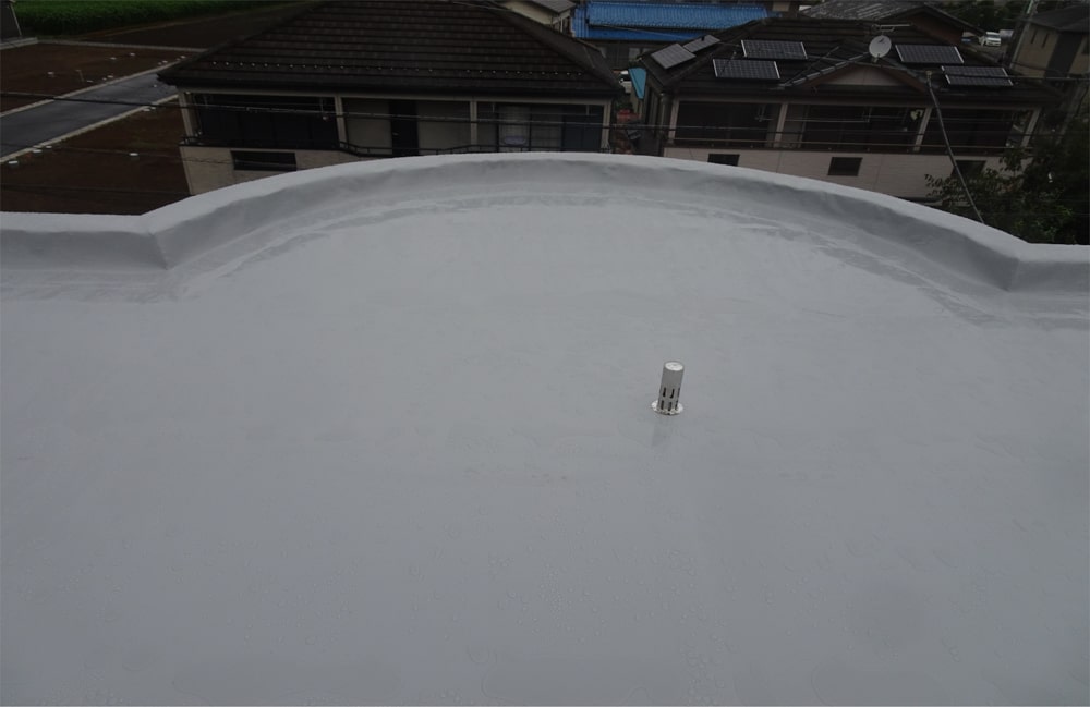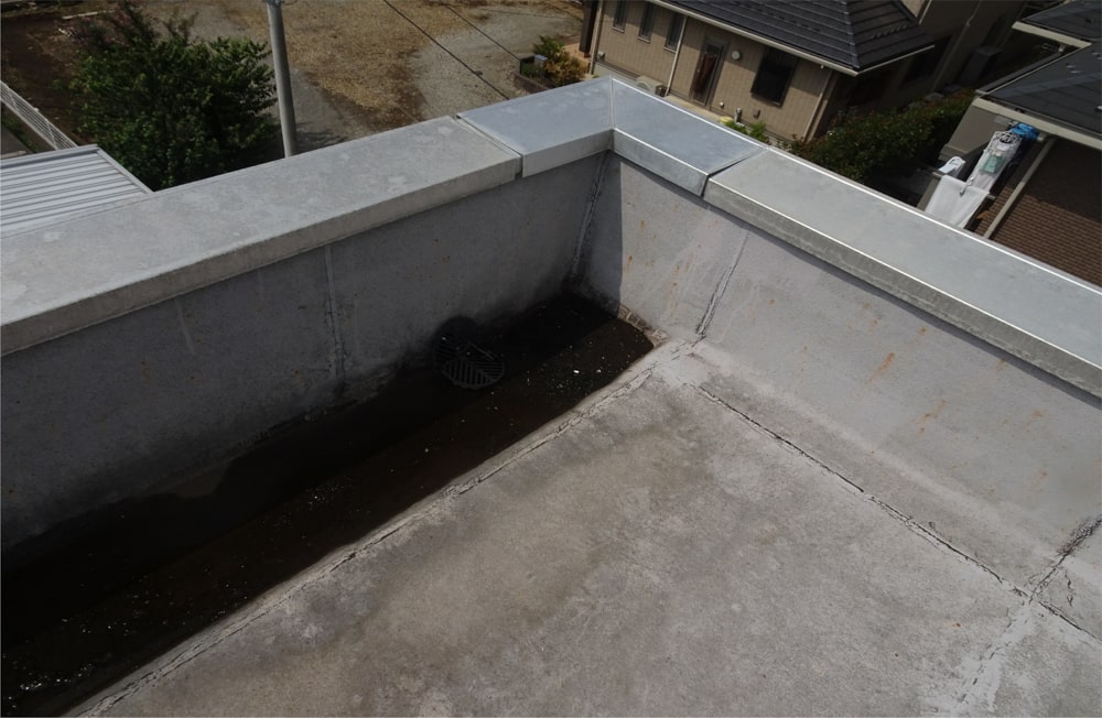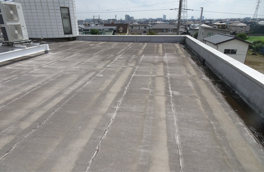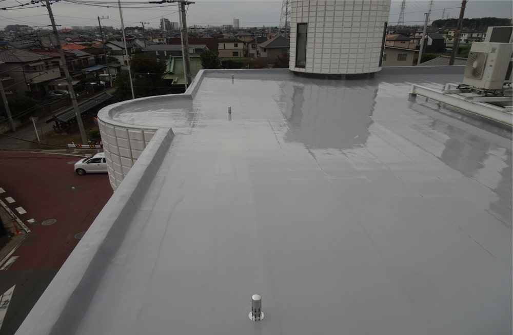 既存アスファルト防水⇒ウレタン防水で改修を実施致しました。既存の防水層の膨れなども多かったですが、下地処理を念入りに行い通気緩衝で施しました。