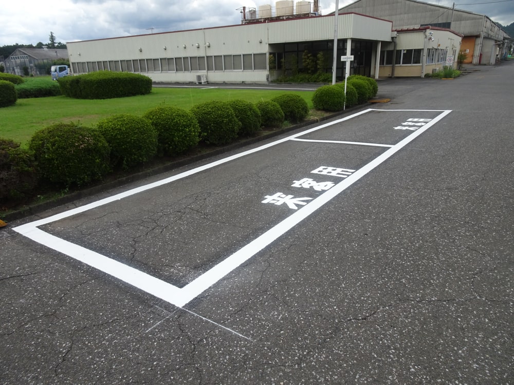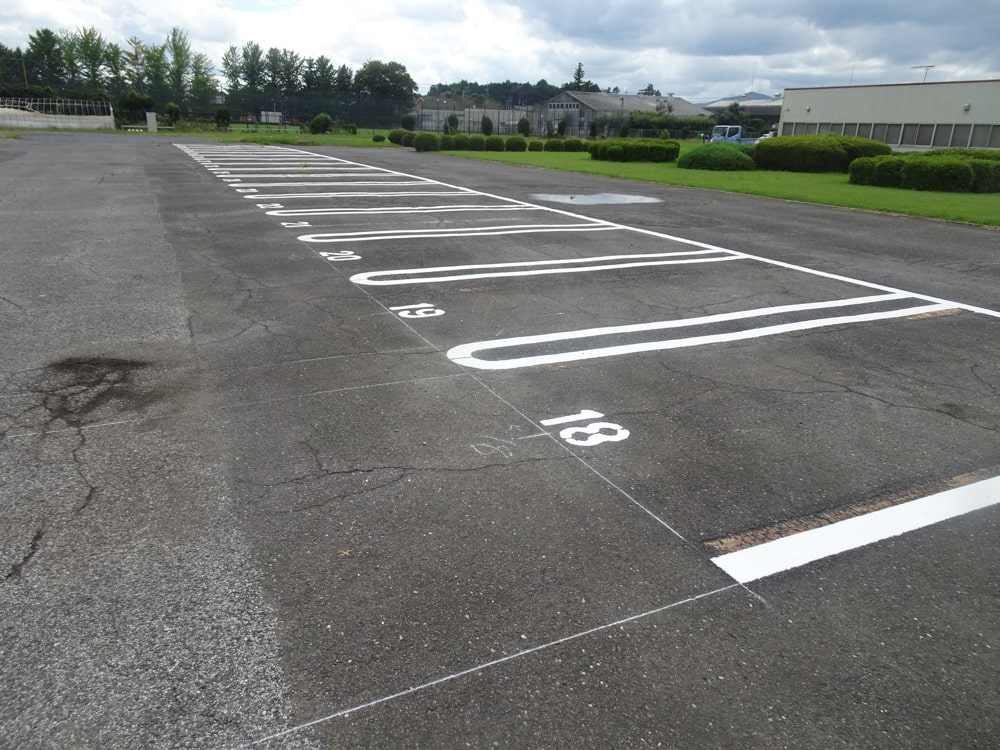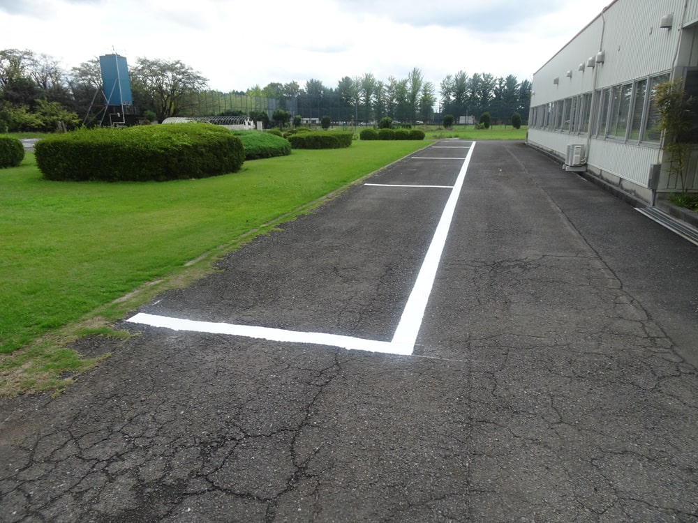 駐車場内の白線工事を実施させて頂きました。既存がほとんど消えかかっており、1台当たりのスペースが狭かった為、新規に駐車台数を変更し引き直しを行いました。余裕をもって駐車できるようになりました。